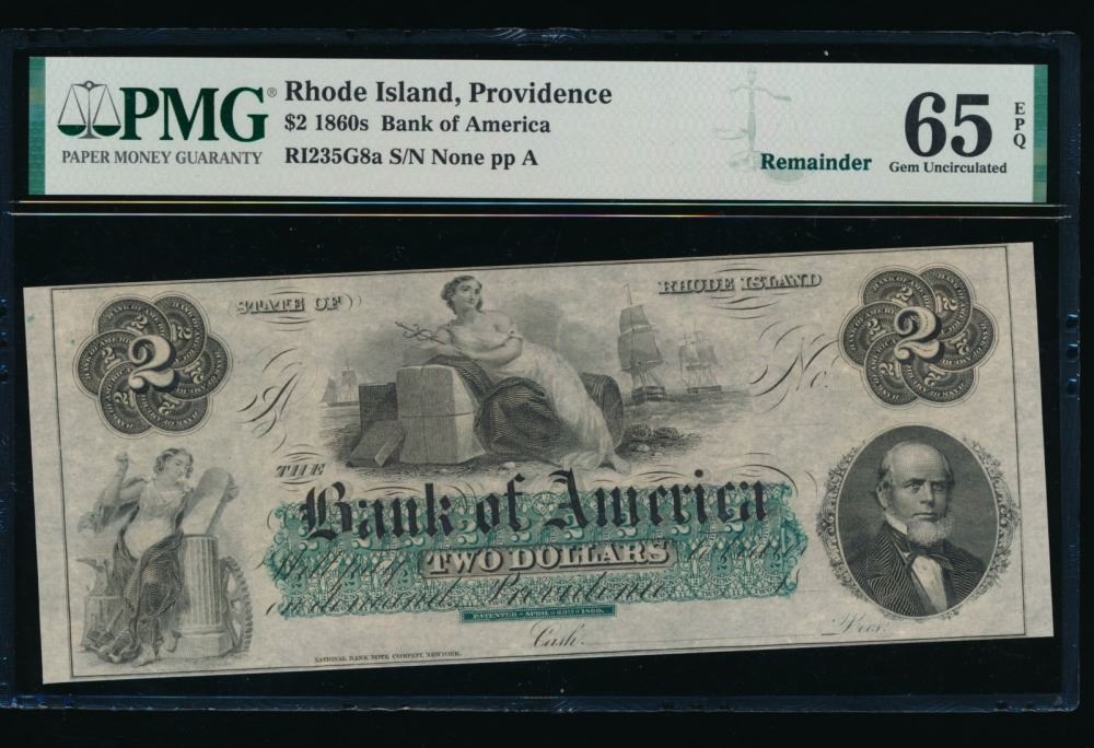 One 1860's $2 Providence RI Obsolete Note PMG 65EPQ.