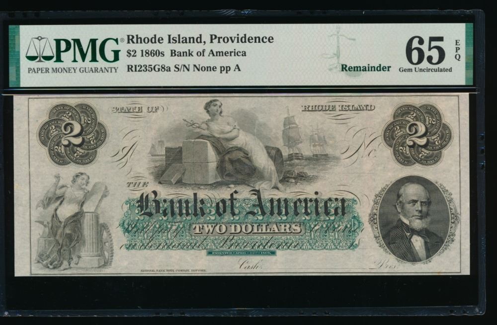 One 1860's $2 Providence RI Obsolete PMG 65EPQ.