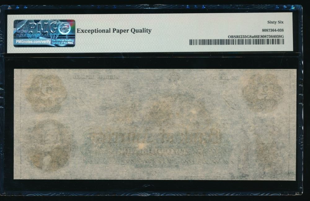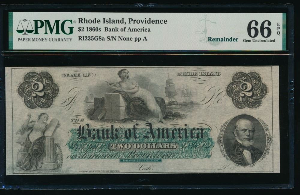 One 1860's $2 Providence RI Obsolete PMG 66EPQ.