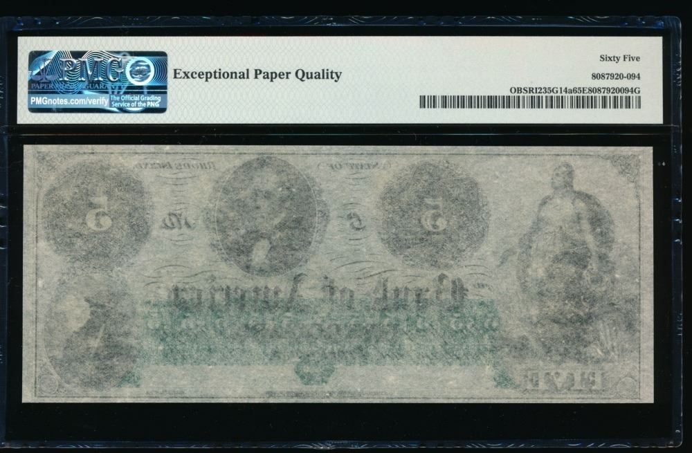 One 1860's $5 Providence RI Obsolete PMG 65EPQ.