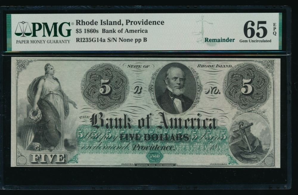One 1860's $5 Providence RI Obsolete PMG 65EPQ.