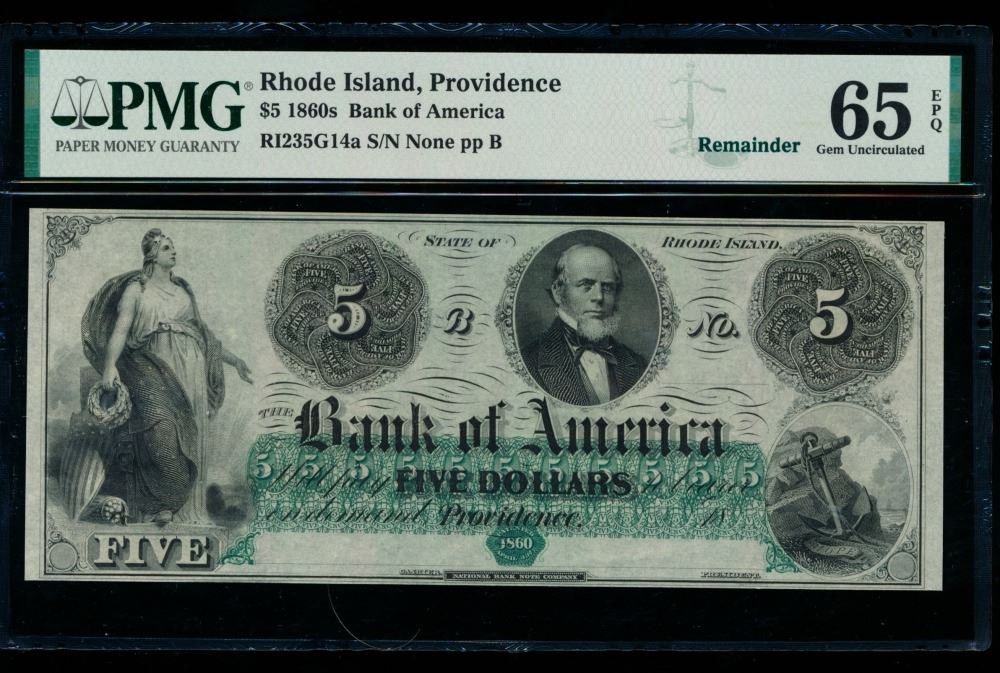 One 1860's $5 Providence RI Obsolete PMG 65EPQ.