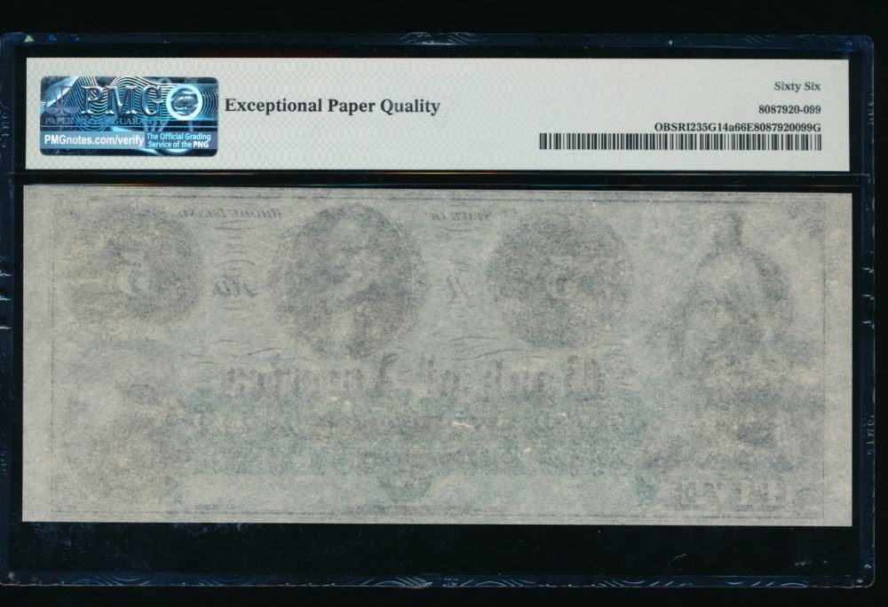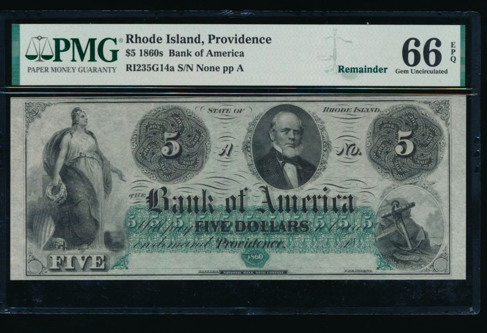 One 1860's $5 Providence RI Obsolete PMG 66EPQ.