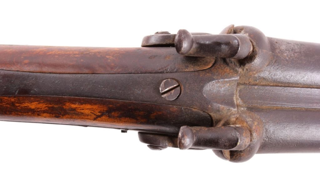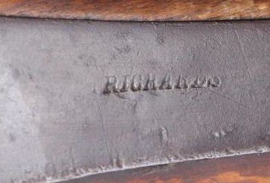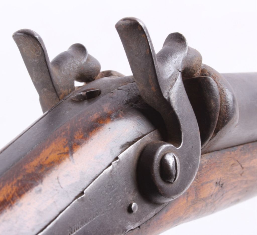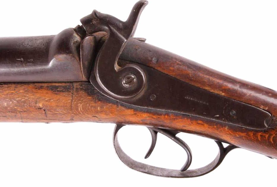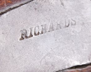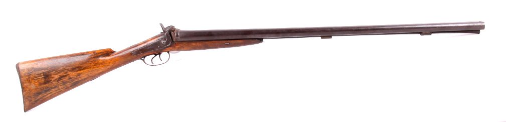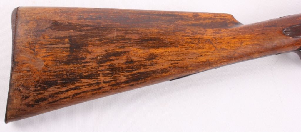 This is a double barrel 10 gauge English percussion shotgun circa 1860’s signed "RICHARDS" on each of the locks. The top of the barrels are marked “LONDON FINE TWIST” and under the barrels when one dismantles thegun. This is a very early firearm showing overall good condition for being around 160 years old. This piece could have been used in the Civil War by the Confederates. The inside of the barrel measures 30.75" long andcomes with the ram rod.