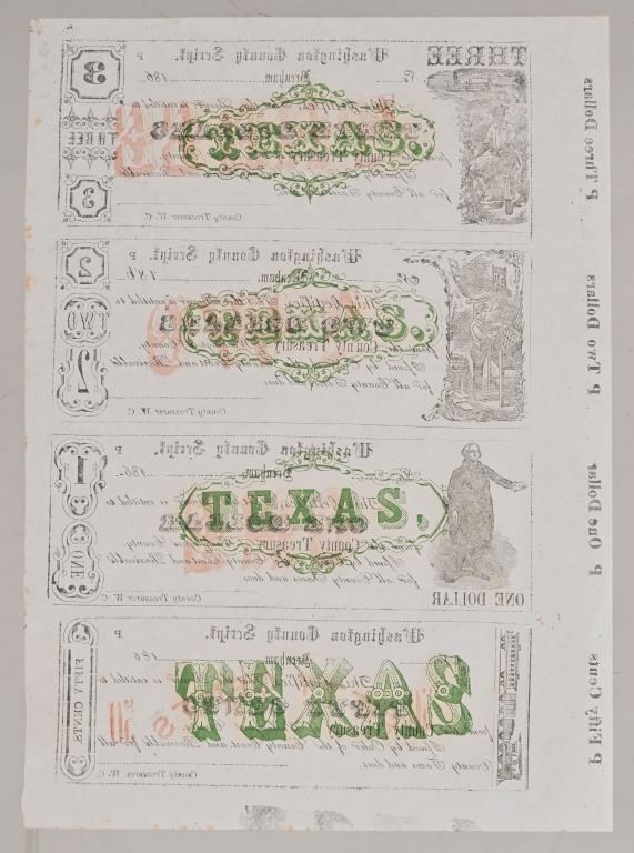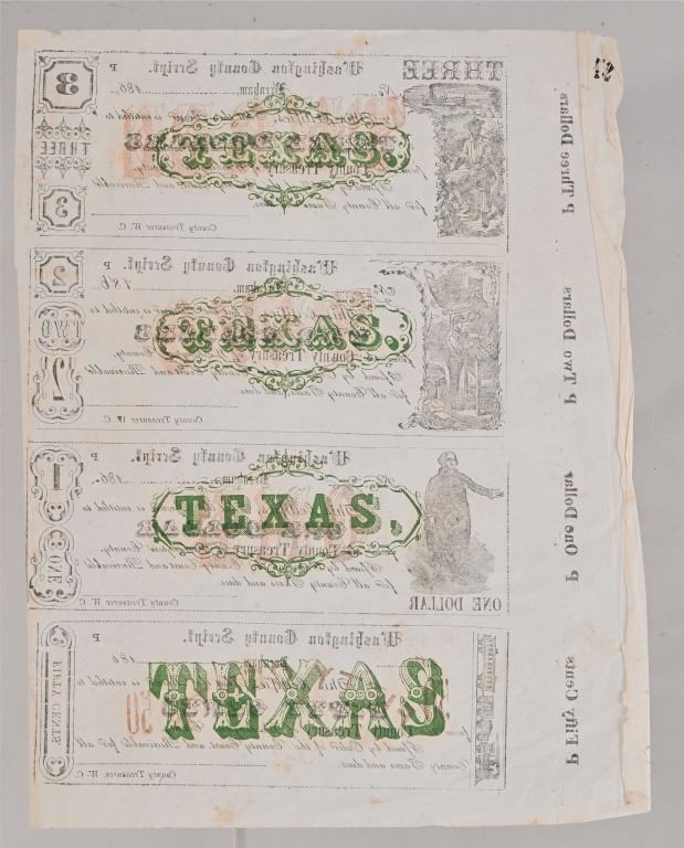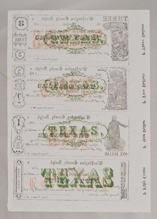 3 sheets of uncut Texas Civil War currency. Measures 8.5" x 11"