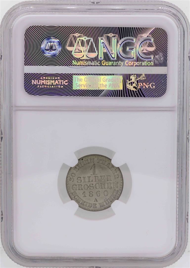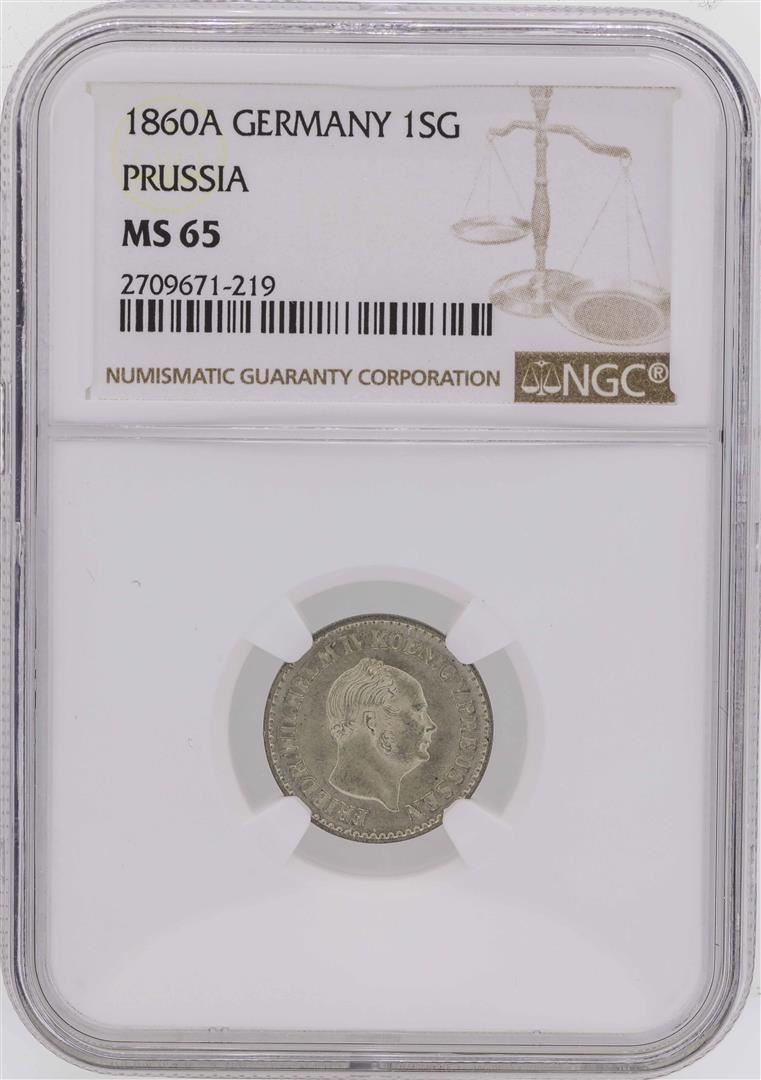 One 1860A Germany 1 Silber Groschen Prussia Coin NGC MS65. NGC Certified.