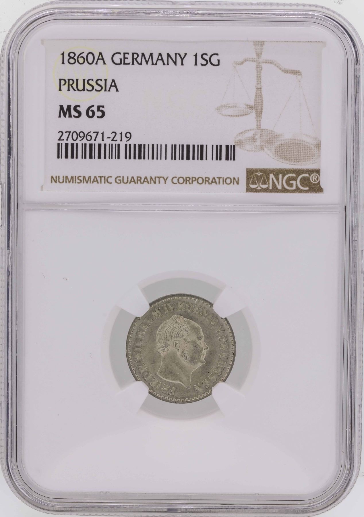 One 1860A Germany 1 Silber Groschen Prussia Coin NGC MS65.