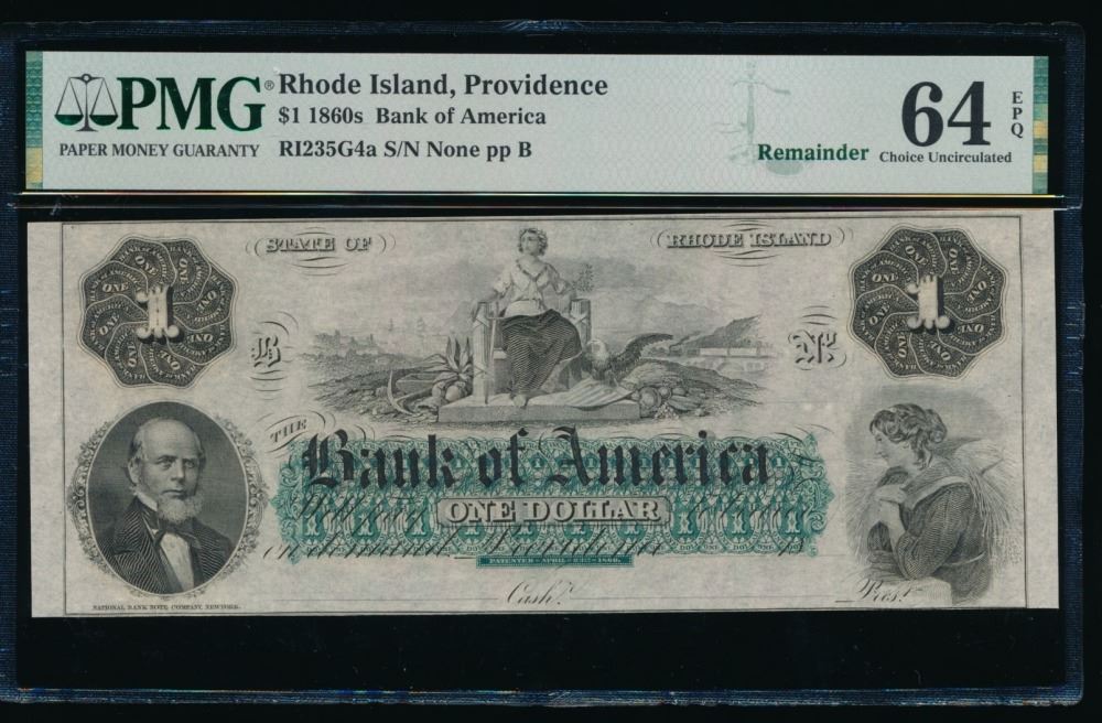 One 1860s $1 Providence RI Obsolete PMG 64EPQ.