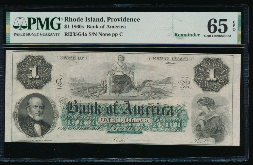 One 1860s $1 Providence RI Obsolete PMG 65EPQ.