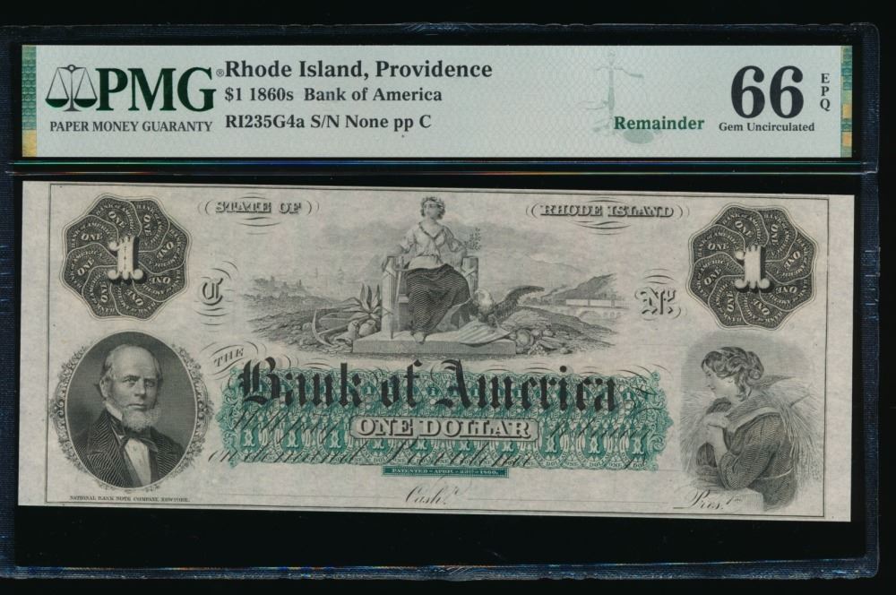 One 1860s $1 Providence RI Obsolete PMG 66EPQ.
