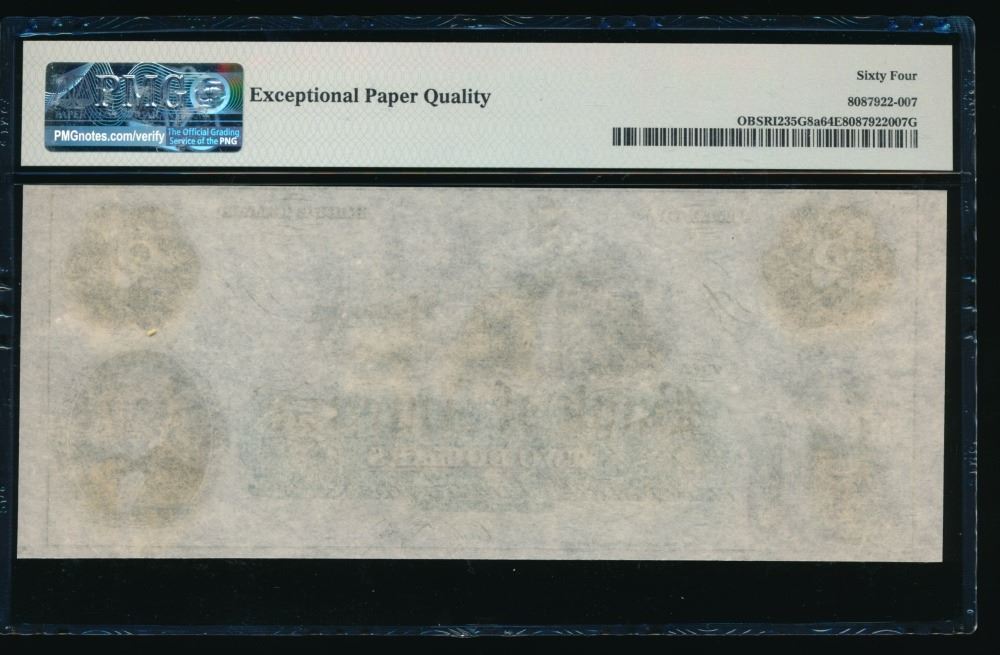 One 1860s $2 Providence RI Obsolete PMG 64EPQ.