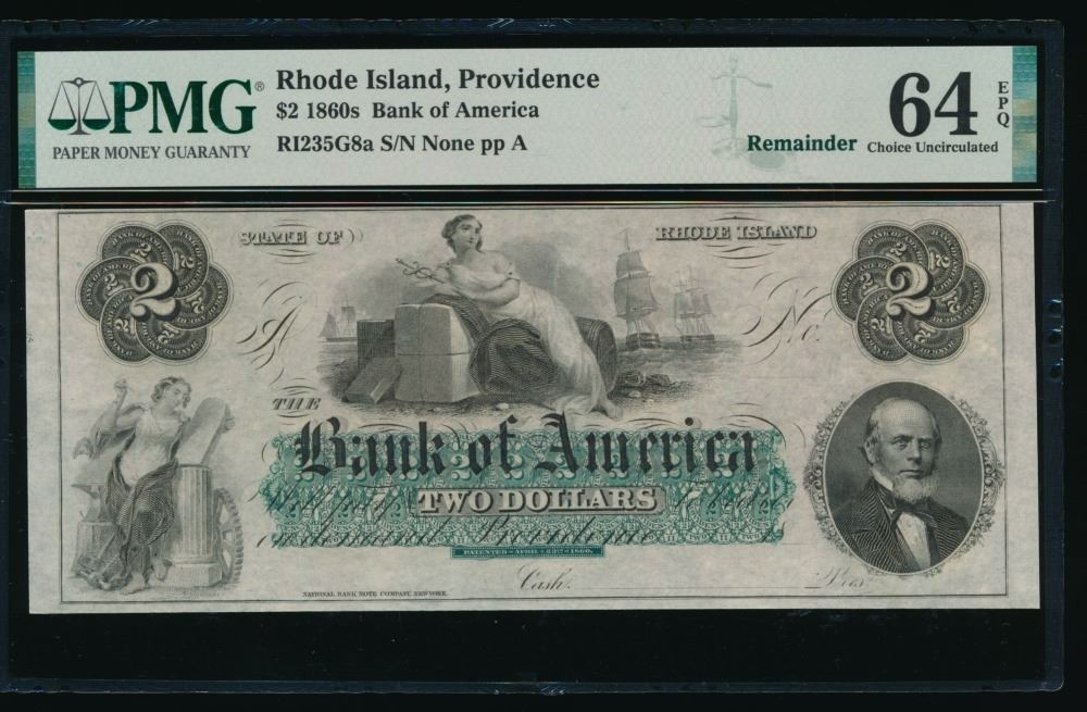 One 1860s $2 Providence RI Obsolete PMG 64EPQ.