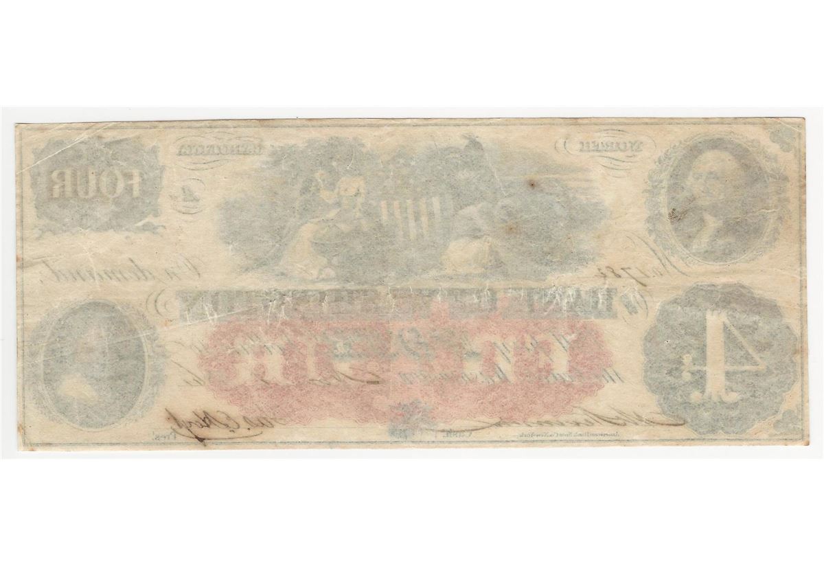 One 1860s $4 The Bank of Washington Obsolete Note.