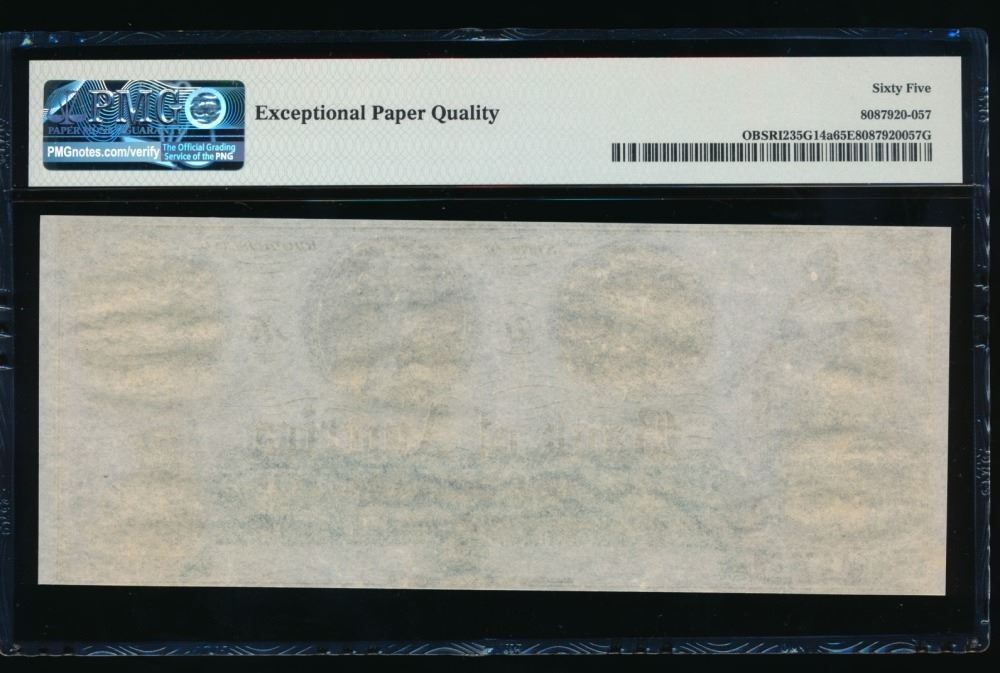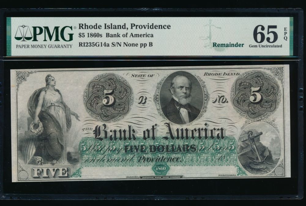 One 1860s $5 Providence RI Obsolete PMG 65EPQ.