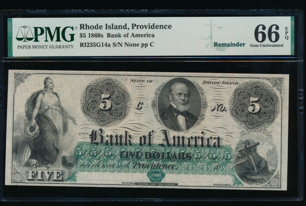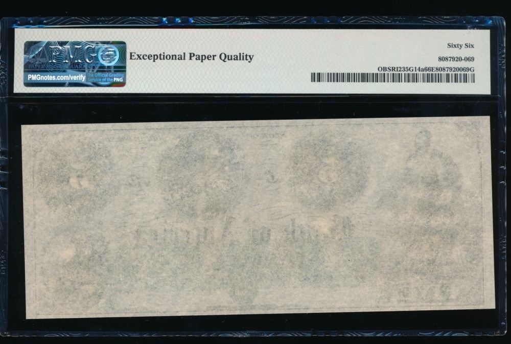 One 1860s $5 Providence RI Obsolete PMG 66EPQ.
