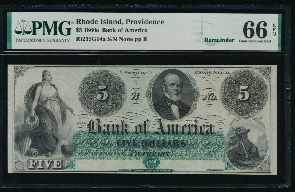 One 1860s $5 Providence RI Obsolete PMG 66EPQ.