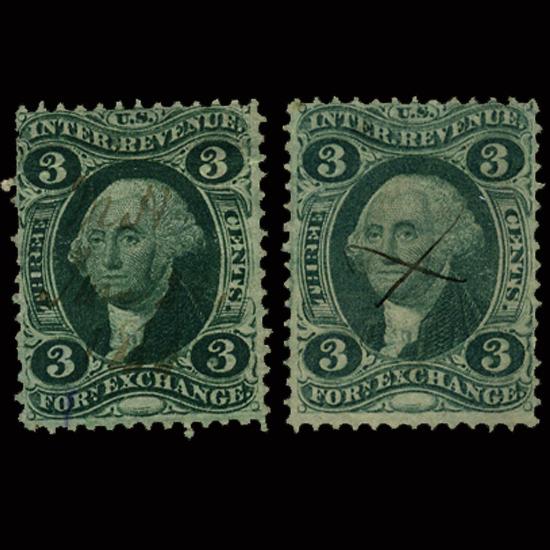 Excellent scarce color variety pair with light cancel and no hidden faults