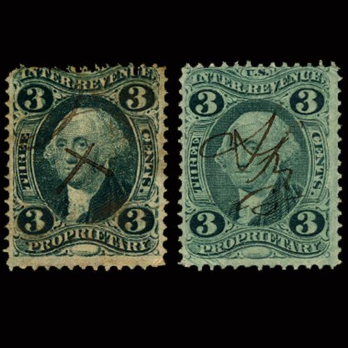 Excellent scarce color variety pair with light cancel and no hidden faults