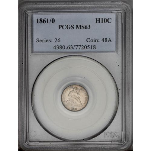 <B>1861/0<H10C> MS63 PCGS.</B></I> The slightly reflective surfaces are blanketed with shades of charcoal-gray, heather, and gold. Nicely struck with no marks that are visible to the unaided eye, on either side of the coin. Population: 6 in 63, 14 finer (3/06). <BR><BR><B>Important notice:</B> Heritage usually auctions material at the rate of 200-250 lots per hour. On some occasions eBay Live bid software or the Internet may not be able to keep up with the pace of the auction. We recommend placing a realistic absentee bid now as insurance to avoid disappointment. Occasionally the auctioneer may eliminate or reject an eBay Live bid, and the auctioneer may also reopen a lot after the close of the eBay live bidding (usually because we missed an audience bid), and may reject your bid even if it shows you as the winning bidder. By bidding via eBay Live, you agree that Heritage may award the lot to another bidder at its sole discretion under the circumstances described above or any other reasonable circumstances. Since eBay bids are not shown to us until we open the lot on the floor, we treat those bids just like floor bids. In most cases the floor responds before the eBay bid is presented to us, due to Internet lag time, so for consistency we have made it a policy that floor bids are always considered first over tie eBay live bids. Also please note that all Heritage lots purchased through eBay Live carry a 20% Buyer's Premium. Please make sure you read the Terms and Conditions before you bid. This lot is being auctioned in conjunction with a live floor auction by Heritage Galleries & Auctioneers. All final auction and invoice information will be supplied by Heritage Galleries & Auctioneers, and all other information should be considered preliminary. Lot:1902 <BR><BR><B>Winning Notification and Billing:</B> After the FINAL session in this auction is complete, Heritage will send e-mail and snail mail invoices. This process normally takes several days. All final auction and invoice information will be supplied by Heritage Galleries & Auctioneers, and all other information should be considered preliminary. <BR><BR>This auction will be conducted on a live auction floor and over the Internet through eBay Live. If you choose to place an absentee bid, please take a moment to <font color='#0000ff'><u><a href='http://pages.ebay.com/liveauctions/help/before/laabsentee.html'>learn how eBay Live absentee bidding works</a></u></font><font color='#000000'>