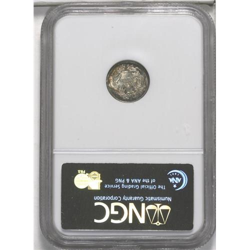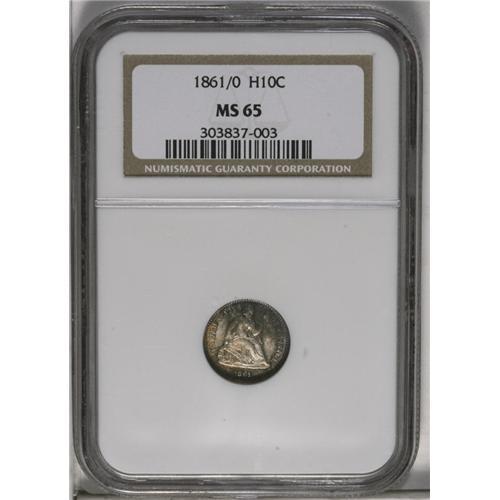 <B>1861/0<H10C> MS65 NGC.</B></I> A deeply toned and richly detailed example that exhibits variegated shades of charcoal-gray and antique-golden intermixed over each side. Although the 1861/0 variety carries a strong premium, it is controversial because some specialists believe that the logotype punch itself had the overdate details. Census: 10 in 65, 2 finer (6/06).<BR><I>From The Belle Glade Collection.</B></I>