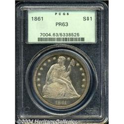 <table><tbody><tr><td><table> <TR><TD width="100%"><TABLE cellSpacing=1 cellPadding=3 width="100%" border=0><TBODY><TR><TD width="100%" bgColor=#79735c><FONT face=arial color=#ffffff size=3><B>Description</B> </FONT></TD></TR><TR><TD width="100%" bgColor=#ffffff><FONT face=arial size=2><B>1861 $1 PR63 PCGS.</B></I> The obverse of this well mirrored specimen is lightly accented in blue and orange shades, allowing for full appreciation of the cameo contrast. On the reverse, a blanket of milky steel-violet and lilac-gray patina effectively subdues the watery surfaces. Definitely a tale of two sides. Population: 27 in 63, 24 finer (10/03). </FONT></TD></TR></TBODY></TABLE></TD></TR></TBODY></TABLE><BR><A name=PricesRealized></A><TABLE cellSpacing=0 cellPadding=0 width="100%" bgColor=#000000 border=0><TBODY><TR><TD width="100%"><TABLE cellSpacing=1 cellPadding=3 width="100%" border=0><TBODY><TR><TD width="100%" bgColor=#79735c><A name=PR><FONT face=arial color=#ffffff size=3><B>Previous Prices from Heritage Auctions</B> </FONT></A></TD></TR><TR><TD bgColor=#f6f6ed><TABLE cellSpacing=0 cellPadding=0 width="100%" border=1><TBODY><TR><TD align=middle width="33%"><B>Date</B></TD><TD align=middle width="33%"><B>Service</B></TD><TD align=middle width="33%"><B>Price</B></TD></TR><TR bgColor=whitesmoke><TD width="33%"><B>07/29/2003</B></TD><TD width="33%">PCGS</TD><TD width="33%">$2,990.00</TD></TR><TR bgColor=whitesmoke><TD width="33%"><B>09/30/2002</B></TD><TD width="33%">PCGS</TD><TD width="33%">$2,702.50</TD></TR><TR bgColor=whitesmoke><TD width="33%"><B>01/11/1997</B></TD><TD width="33%">PCGS</TD><TD width="33%">$2,530.00</TD></TR><TR bgColor=whitesmoke><TD width="33%"><B>08/16/1995</B></TD><TD width="33%">NGC</TD><TD width="33%">$2,145.00</TD></TR><TR bgColor=whitesmoke><TD width="33%"><B>08/19/1995</B></TD><TD width="33%">PCGS</TD><TD width="33%">$3,190.00</TD></TR><TR bgColor=whitesmoke><TD width="33%"><B>10/01/1993</B></TD><TD width="33%">PCGS</TD><TD width="33%">$2,310.00</TD></TR><TR bgColor=whitesmoke><TD width="33%"><B>08/12/2000</B></TD><TD width="33%">NGC</TD><TD width="33%">$3,925.00</TD></TR><TR bgColor=whitesmoke><TD width="33%"><B>11/01/1996</B></TD><TD width="33%">NGC</TD><TD width="33%">$2,475.00</TD></TR><TR bgColor=whitesmoke><TD width="33%"><B>01/01/1999</B></TD><TD width="33%">PCGS</TD><TD width="33%">$4,830.00</TD></TR></TBODY></TABLE></TD></TR><TR><TD bgColor=#ffffff><FONT face=arial size=1 ?>PLEASE NOTE: All prices realized reflect the final hammer price PLUS the buyer's premium in auctions that charge a buyer's premium. Each item has a notation at the top of the listing indicating whether that lot included a buyer's premium. Example: A item that sells with a final hammer price of $100 and a 20% buyer's premium will display with a price realized of $120. All information listed is intended to be as accurate as possible, but errors are possible. Please use this guide carefully and inform us of any inaccuracies. </FONT></TD></TR></TBODY></TABLE></TD></TR></TBODY></TABLE><BR><TABLE cellSpacing=0 cellPadding=0 width="100%" bgColor=#000000 border=0><TBODY><TR><TD width="100%"><TABLE cellSpacing=1 cellPadding=3 width="100%" border=0><TBODY><TR><TD width="100%" bgColor=#79735c colSpan=6><FONT face=arial color=#ffffff size=3><B>Price Guide*</B> </FONT></TD></TR><TR bgColor=#f6f6ed><TD align=middle><B>Grade</B> </TD><TD align=middle><B>Coin World<BR>(Trends)</B> </TD><TD align=middle><B>Numismedia<BR>Retail</B> </TD><TD align=middle><B>Numismedia<BR>Wholesale</B> </TD><TD align=middle><B>Coin<BR>Universe</B> </TD><TD align=middle><B>Heritage<BR>Value Index</B> </TD></TR><TR bgColor=#ffffff><TD align=middle>62</TD><TD align=right>---</TD><TD align=right>---</TD><TD align=right>$2,025.00</TD><TD align=right>---</TD><TD align=right>$2,074.25</TD></TR><TR style="FONT-WEIGHT: bold" bgColor=#cccfdd><TD align=middle>63</TD><TD align=right>---</TD><TD align=right>---</TD><TD align=right>$2,650.00</TD><TD align=right>$3,900.00</TD><TD align=right>$2,638.83</TD></TR><TR bgColor=#ffffff><TD align=middle>64</TD><TD align=right>---</TD><TD align=right>---</TD><TD align=right>$5,575.00</TD><TD align=right>$6,750.00</TD><TD align=right>$4,736.33</TD></TR><TR bgColor=#ffffff><TD colSpan=6><FONT size=1>*All information listed is intended to be as accurate as possible, but errors are possible. No item may be returned or refused based on this information which is provided as a service to our customers. You should contact each pricing source directly to determine the accuracy of this information. </FONT></TD></TR></TBODY></TABLE></TD></TR></TBODY></TABLE><BR><TABLE cellSpacing=0 cellPadding=0 width="100%" bgColor=#000000 border=0><TBODY><TR><TD width="100%"><TABLE cellSpacing=1 cellPadding=3 width="100%" border=0><TBODY><TR><TD width="100%" bgColor=#79735c><FONT face=arial color=#ffffff size=3><B>Population Guide</B> </FONT></TD></TR><TR bgColor=#ffffff><TD align=middle><!-- Begin Output of Population Grid--><TABLE cellSpacing=0 cellPadding=0 width="100%" border=0><TBODY><TR><TD vAlign=center><TABLE cellSpacing=0 width="100%" border=1 cellsadding="3"><TBODY><TR><TD vAlign=center><TABLE cellSpacing=0 cellPadding=3 width="100%" border=1><TBODY><TR><TD vAlign=center align=middle bgColor=#f0f1e8 colSpan=2 <CENTER><FONT face=Arial size=2><B>PCGS Pop </B></FONT><CENTER></CENTER></TD><TD vAlign=center align=middle bgColor=#f0f1e8 colSpan=2><CENTER><FONT face=Arial size=2><B>NGC Pop</B></CENTER></FONT></TD></TR><TR><TD vAlign=center><FONT face=Arial size=2>(63)</FONT> </TD><TD vAlign=center align=right><FONT face=Arial size=2>27</FONT> </TD><TD vAlign=center><FONT face=Arial size=2>(63)</FONT> </TD><TD vAlign=center align=right><FONT face=Arial size=2>20</FONT> </TD></TR><TR><TD vAlign=center><FONT face=Arial size=2>(>63)</FONT> </TD><TD vAlign=center align=right><FONT face=Arial size=2>24</FONT> </TD><TD vAlign=center><FONT face=Arial size=2>(>63)</FONT> </TD><TD vAlign=center align=right><FONT face=Arial siz