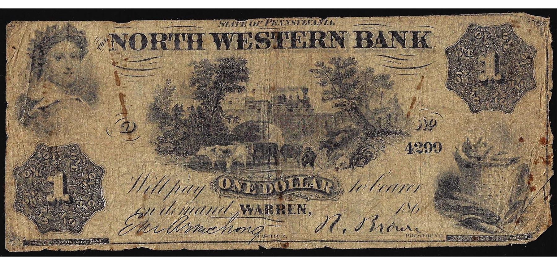 1861 $1 The North Western Bank Warren, PA Obsolete Banknote