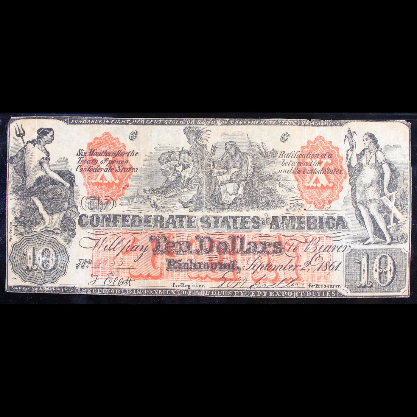 1861 $10 CT-37 Contemporary Counterfeit CSA Confederate States Of America Graded vf20 By PMG