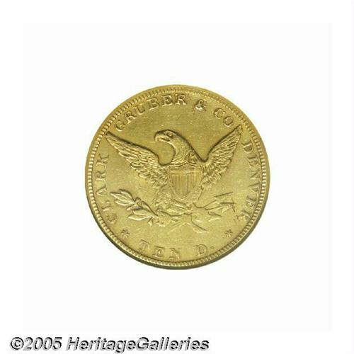 1861 $10 Clark, Gruber & Co. Ten Dollar AU58 NGC.