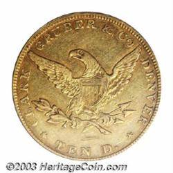 <table><tr><td><TABLE cellSpacing=0 cellPadding=0 width="100%" bgColor=#000000 border=0><TBODY> <TR><TD width="100%"><TABLE cellSpacing=1 cellPadding=3 width="100%" border=0><TBODY><TR><TD width="100%" bgColor=#79735c><FONT face=arial color=#ffffff size=3><B>Description</B> </FONT></TD></TR><TR><TD width="100%" bgColor=#ffffff><FONT face=arial size=2><B>1861 $10 Clark, Gruber & Co. Ten Dollar XF45 PCGS.</B></I> K-7, R.4.This olive-gold Territorial piece has ample luster and only moderate rub on the cheek, hair, and eagle's wingtips. The right obverse field has a pinscratch, as does the lower reverse field. According to Don Kagin in his 1981-dated standard reference, all examples seen have a series of die cracks through the date and left wing. However, the present gold piece is apparently an early strike, since not only are there no visible die cracks, but the base of the first 1 in the date is noticeably repunched, unmentioned in Kagin. Listed on page 302 of the 2003 <I>Guide Book.</B></I> Population: 12 in 45, 45 finer (9/03). </FONT></TD></TR></TBODY></TABLE></TD></TR></TBODY></TABLE><BR><A name=PricesRealized></A><TABLE cellSpacing=0 cellPadding=0 width="100%" bgColor=#000000 border=0><TBODY><TR><TD width="100%"><TABLE cellSpacing=1 cellPadding=3 width="100%" border=0><TBODY><TR><TD width="100%" bgColor=#79735c><A name=PR><FONT face=arial color=#ffffff size=3><B>Previous Prices from Heritage Auctions</B> </FONT></A></TD></TR><TR><TD bgColor=#f6f6ed><TABLE cellSpacing=0 cellPadding=0 width="100%" border=1><TBODY><TR><TD align=middle width="33%"><B>Date</B></TD><TD align=middle width="33%"><B>Service</B></TD><TD align=middle width="33%"><B>Price</B></TD></TR><TR bgColor=whitesmoke><TD width="33%"><B>09/28/2002</B></TD><TD width="33%">ANACS</TD><TD width="33%">$6,612.50</TD></TR></TBODY></TABLE></TD></TR><TR><TD bgColor=#ffffff><FONT face=arial size=1 ?>PLEASE NOTE: All prices realized reflect the final hammer price PLUS the buyer's premium in auctions that charge a buyer's premium. Each item has a notation at the top of the listing indicating whether that lot included a buyer's premium. Example: A item that sells with a final hammer price of $100 and a 20% buyer's premium will display with a price realized of $120. All information listed is intended to be as accurate as possible, but errors are possible. Please use this guide carefully and inform us of any inaccuracies. </FONT></TD></TR></TBODY></TABLE></TD></TR></TBODY></TABLE><BR><TABLE cellSpacing=0 cellPadding=0 width="100%" bgColor=#000000 border=0><TBODY><TR><TD width="100%"><TABLE cellSpacing=1 cellPadding=3 width="100%" border=0><TBODY><TR><TD width="100%" bgColor=#79735c colSpan=6><FONT face=arial color=#ffffff size=3><B>Price Guide*</B> </FONT></TD></TR><TR bgColor=#f6f6ed><TD align=middle><B>Grade</B> </TD><TD align=middle><B>Coin World<BR>(Trends)</B> </TD><TD align=middle><B>Numismedia<BR>Retail</B> </TD><TD align=middle><B>Numismedia<BR>Wholesale</B> </TD><TD align=middle><B>Coin<BR>Universe</B> </TD><TD align=middle><B>Heritage<BR>Value Index</B> </TD></TR><TR bgColor=#ffffff><TD align=middle>40</TD><TD align=right>---</TD><TD align=right>---</TD><TD align=right>---</TD><TD align=right>---</TD><TD align=right>---</TD></TR><TR style="FONT-WEIGHT: bold" bgColor=#cccfdd><TD align=middle>45</TD><TD align=right>---</TD><TD align=right>---</TD><TD align=right>---</TD><TD align=right>---</TD><TD align=right>---</TD></TR><TR bgColor=#ffffff><TD align=middle>50</TD><TD align=right>---</TD><TD align=right>---</TD><TD align=right>---</TD><TD align=right>---</TD><TD align=right>---</TD></TR><TR bgColor=#ffffff><TD colSpan=6><FONT size=1>*All information listed is intended to be as accurate as possible, but errors are possible. No item may be returned or refused based on this information which is provided as a service to our customers. You should contact each pricing source directly to determine the accuracy of this information. </FONT></TD></TR></TBODY></TABLE></TD></TR></TBODY></TABLE><BR><TABLE cellSpacing=0 cellPadding=0 width="100%" bgColor=#000000 border=0><TBODY><TR><TD width="100%"><TABLE cellSpacing=1 cellPadding=3 width="100%" border=0><TBODY><TR><TD width="100%" bgColor=#79735c><FONT face=arial color=#ffffff size=3><B>Population Guide</B> </FONT></TD></TR><TR bgColor=#ffffff><TD align=middle><!-- Begin Output of Population Grid--><TABLE cellSpacing=0 cellPadding=0 width="100%" border=0><TBODY><TR><TD vAlign=center><TABLE cellSpacing=0 width="100%" border=1 cellsadding="3"><TBODY><TR><TD vAlign=center><TABLE cellSpacing=0 cellPadding=3 width="100%" border=1><TBODY><TR><TD vAlign=center align=middle bgColor=#f0f1e8 colSpan=2 <CENTER><FONT face=Arial size=2><B>PCGS Pop </B></FONT><CENTER></CENTER></TD><TD vAlign=center align=middle bgColor=#f0f1e8 colSpan=2><CENTER><FONT face=Arial size=2><B>NGC Pop</B></CENTER></FONT></TD></TR><TR><TD vAlign=center><FONT face=Arial size=2>(45)</FONT> </TD><TD vAlign=center align=right><FONT face=Arial size=2>12</FONT> </TD><TD vAlign=center><FONT face=Arial size=2>(45)</FONT> </TD><TD vAlign=center align=right><FONT face=Arial size=2>3</FONT> </TD></TR><TR><TD vAlign=center><FONT face=Arial size=2>(>45)</FONT> </TD><TD vAlign=center align=right><FONT face=Arial size=2>45</FONT> </TD><TD vAlign=center><FONT face=Arial size=2>(>45)</FONT> </TD><TD vAlign=center align=right><FONT face=Arial size=2>44</FONT> </TD></TR></TBODY></TABLE></TD></TR></TBODY></TABLE></TD></TR></TBODY></TABLE><!-- End Output of Population Grid--></TD></TR></TBODY></TABLE></TD></TR></TBODY></TABLE><BR><TABLE cellSpacing=0 cellPadding=0 width="100%" bgColor=#000000 border=0><TBODY><TR> Important notice: Heritage usually auctions material at the rate of 200-250 lots per hour. On some occasions eBay Live bid software or the Internet may not be able to keep up with the pace of the auction. We recommend placing a realistic absentee bid now as insurance to avoid disappointment. Occasionally the auctioneer may eliminate or rejec
