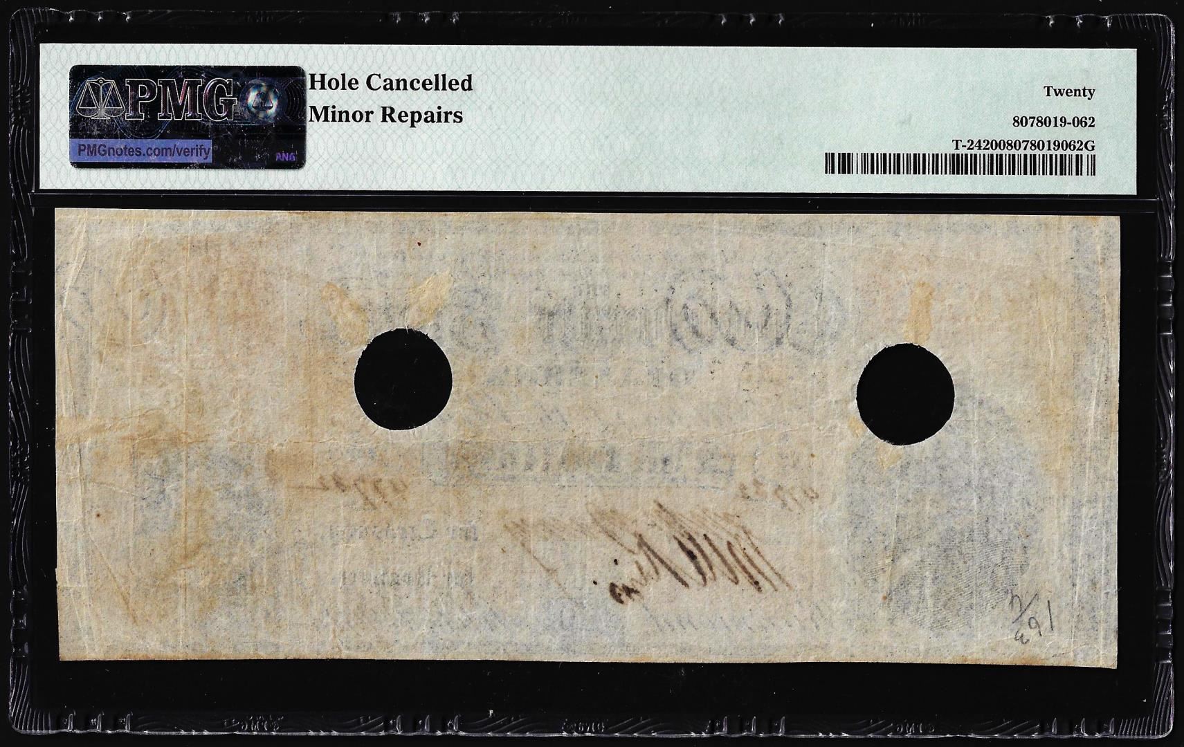 1861 $10 Confederate States of America Note T-24 PMG Very Fine 20 Hole Canceled
