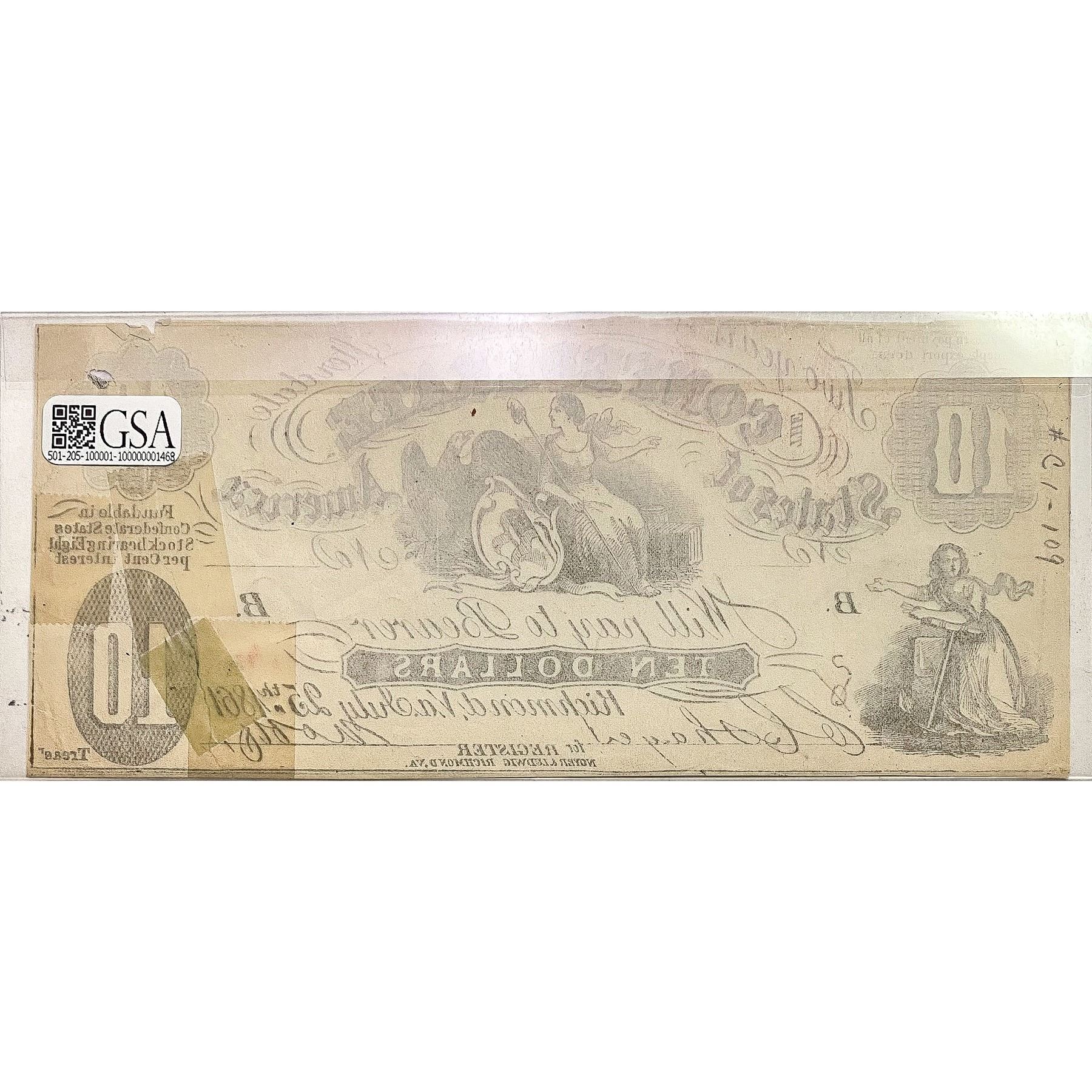 f. Notes sold referencing a third-party grading service are sold “AS IS” without any express or implied warranty, except for guarantee by GSA that they are genuine. Grading, condition or other attributes of any Product may have a material effect on its value and the opinion of others, including third-party grading services such as PCGS Currency and PMG may differ with that of GSA. GSA shall not be bound by any prior or subsequent opinion, determination, or certification by any grading service. Bidders specifically waive any claim to right of return of any Product because of the opinion, determination, or certification, or lack thereof, by any grading service. Certain warranties may be available from the grading services and Bidders are referred to them for further details: Paper Money Guaranty (PMG), PO Box 4711, Sarasota, FL 34230; PCGS Currency, PO Box 10470, Peoria, IL 61612-0470; PCGS Gold Shield, PO Box 9458, Newport Beach, CA 92658. Third-party graded notes are not returnable for any reason whatsoever.