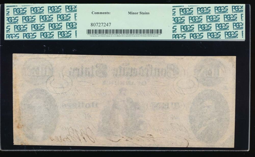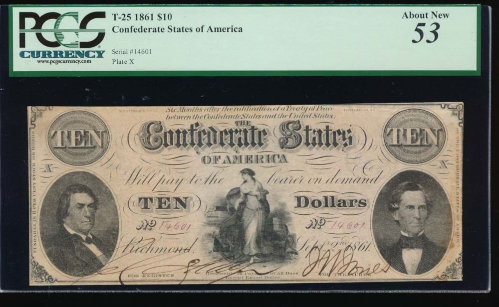 One 1861 $10 Confederate States of American Note PCGS 53.