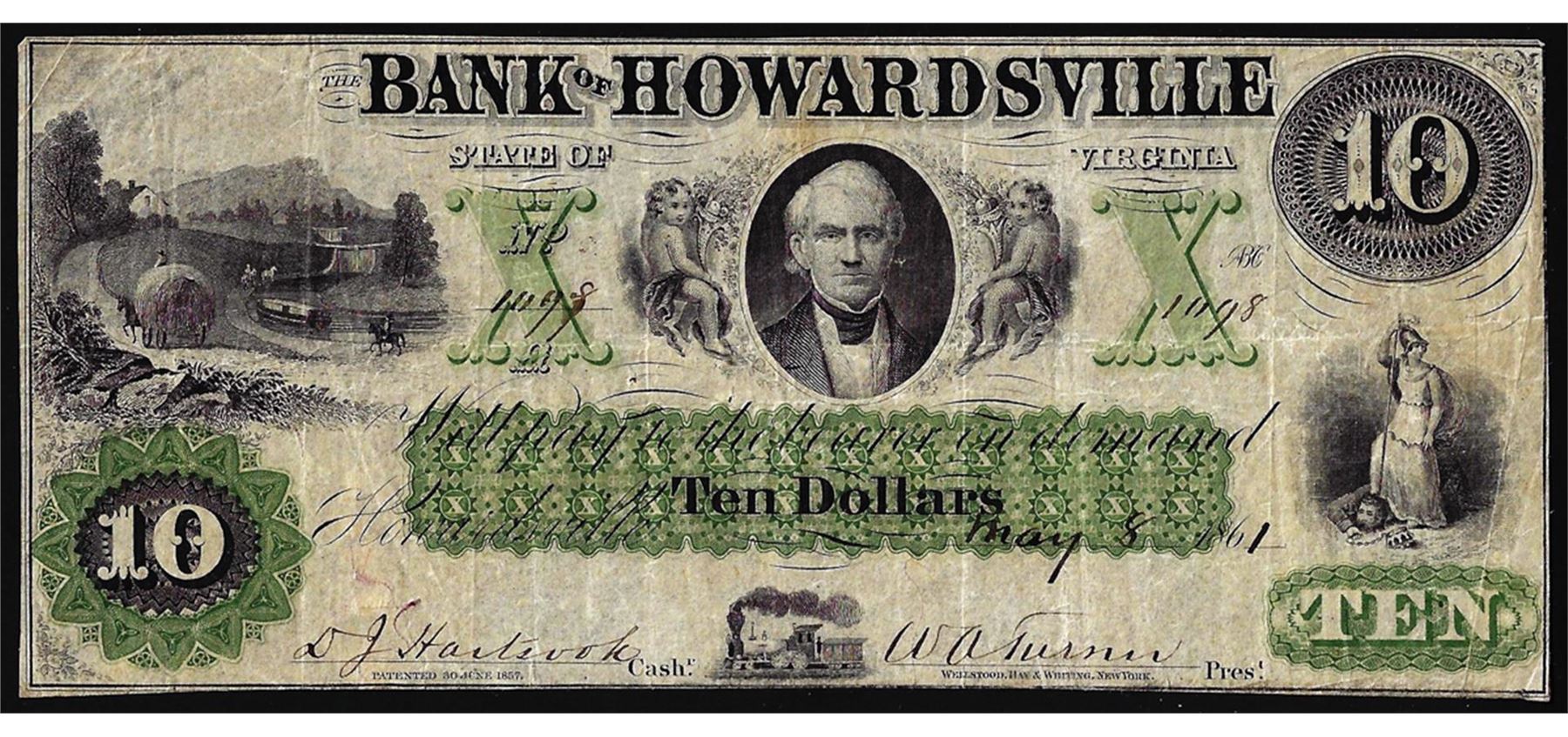 One 1861 $10 The Bank of Howardsville Virginia Obsolete Note.