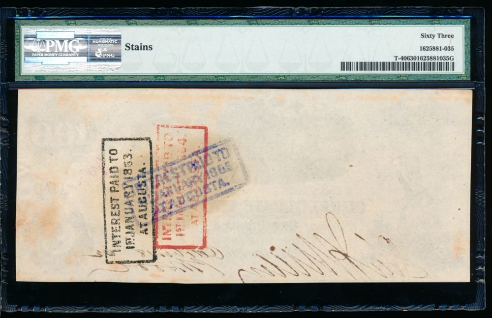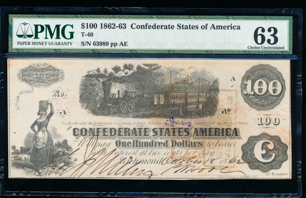 One 1861 $100 Confederate States of America Note PMG 63.