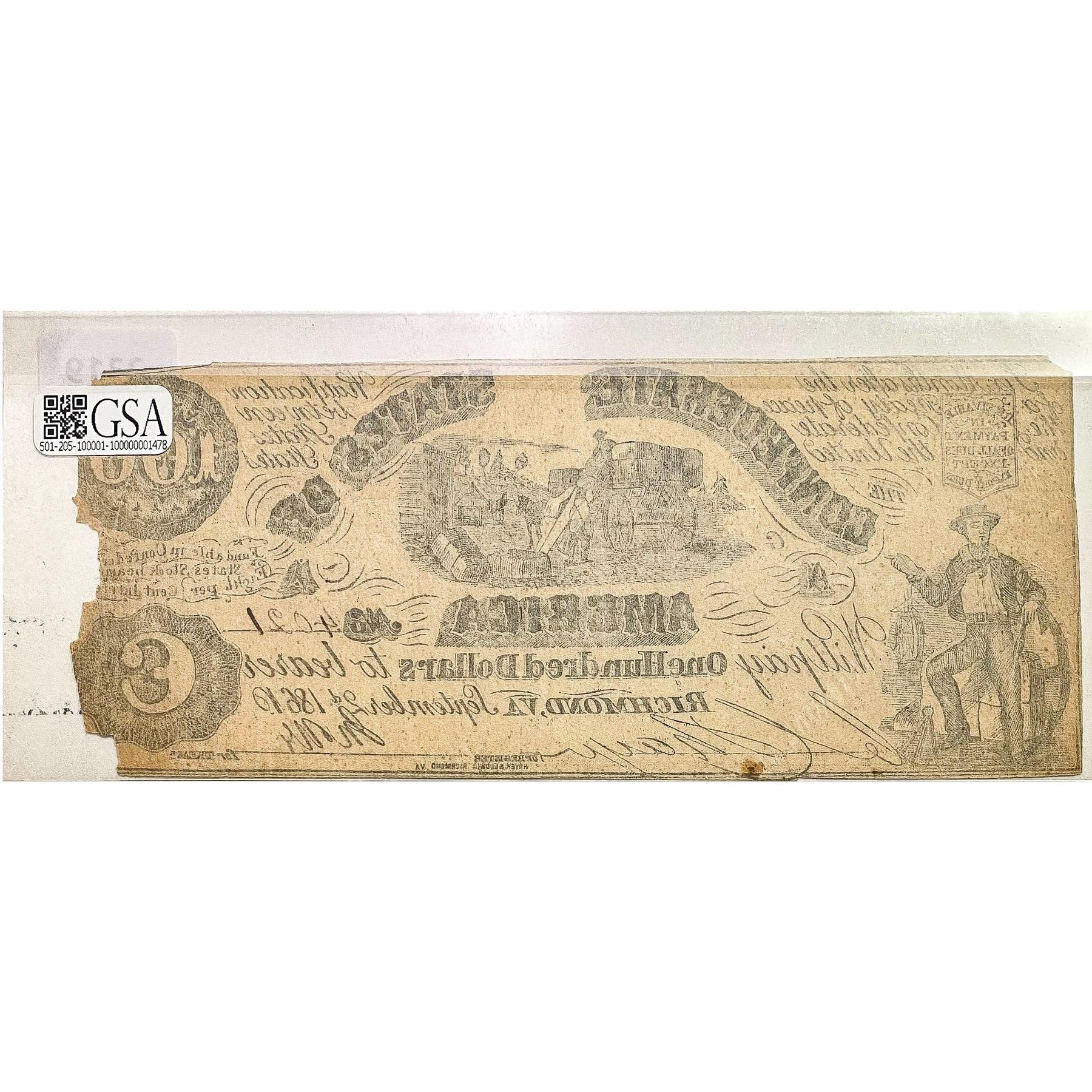 f. Notes sold referencing a third-party grading service are sold “AS IS” without any express or implied warranty, except for guarantee by GSA that they are genuine. Grading, condition or other attributes of any Product may have a material effect on its value and the opinion of others, including third-party grading services such as PCGS Currency and PMG may differ with that of GSA. GSA shall not be bound by any prior or subsequent opinion, determination, or certification by any grading service. Bidders specifically waive any claim to right of return of any Product because of the opinion, determination, or certification, or lack thereof, by any grading service. Certain warranties may be available from the grading services and Bidders are referred to them for further details: Paper Money Guaranty (PMG), PO Box 4711, Sarasota, FL 34230; PCGS Currency, PO Box 10470, Peoria, IL 61612-0470; PCGS Gold Shield, PO Box 9458, Newport Beach, CA 92658. Third-party graded notes are not returnable for any reason whatsoever.