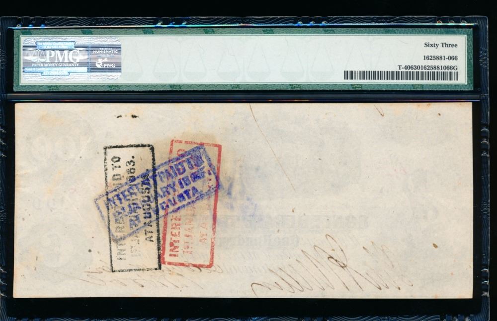 One 1861 $100 Confederate States of American Note PMG 63.