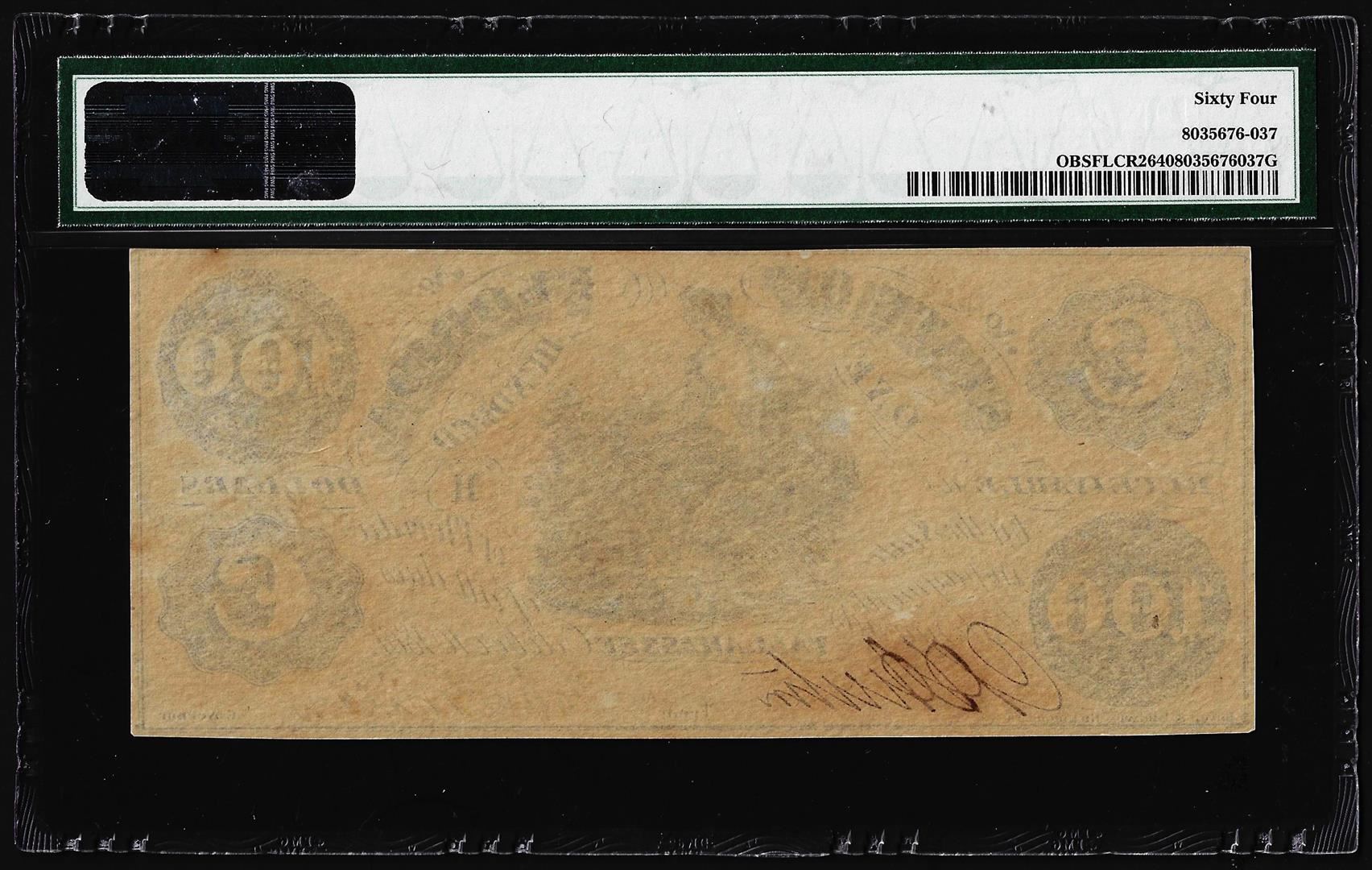 One 1861 $100 State of Florida Tallahassee Cr.2 Obsolete Note PMG Choice Uncirculated 64. PMG Certified.