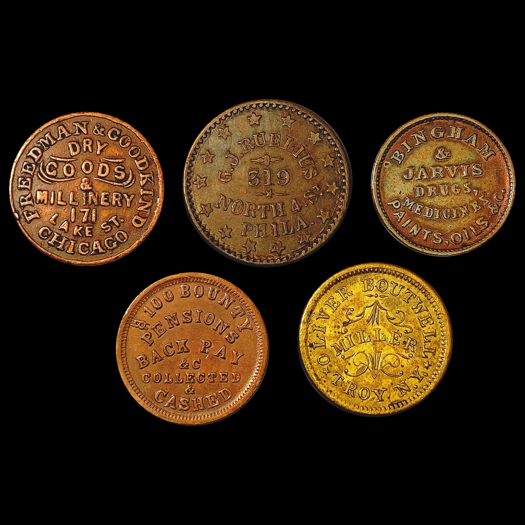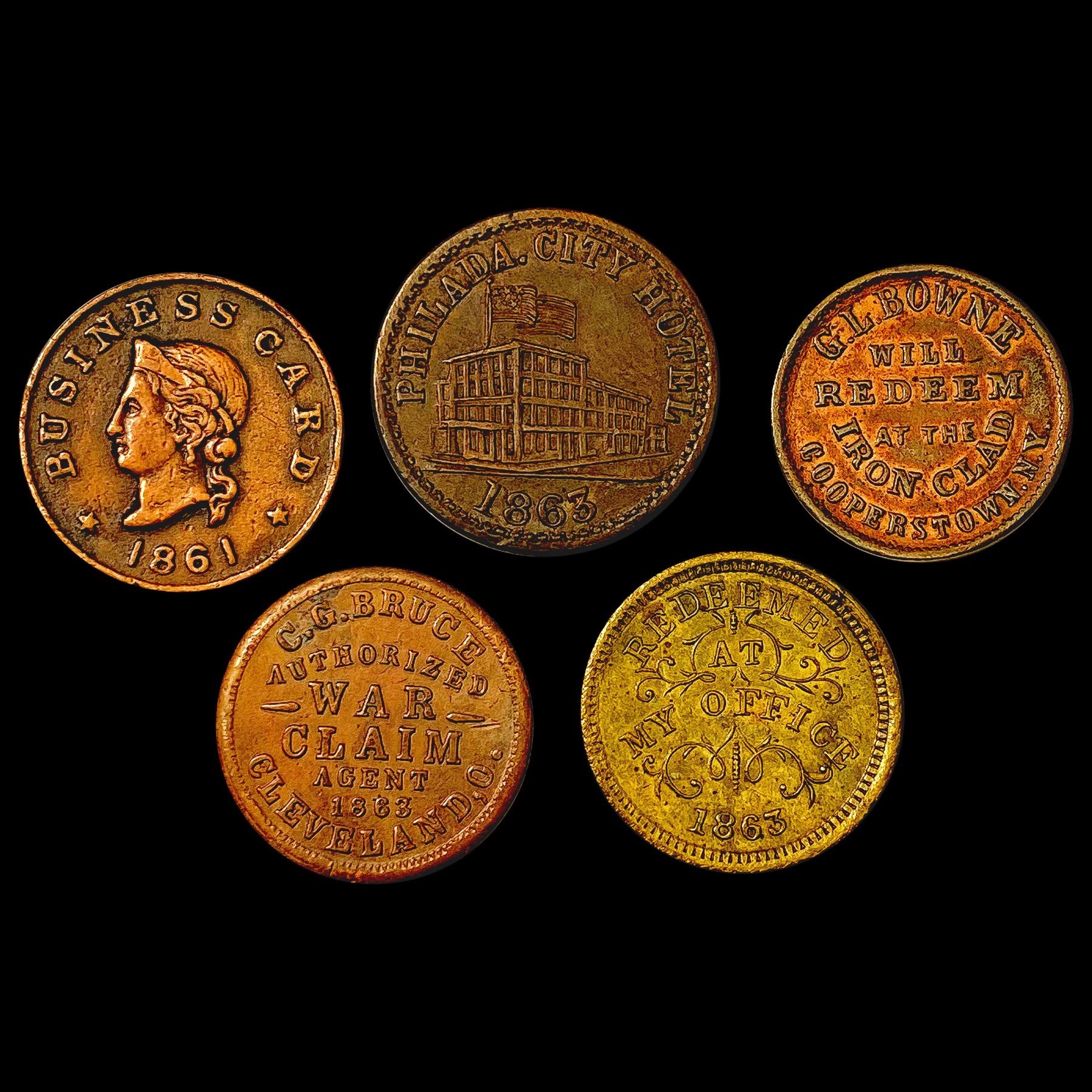 1861-1863 Varied Civil War Tokens Lot [5 Coins] HIGH GRADE