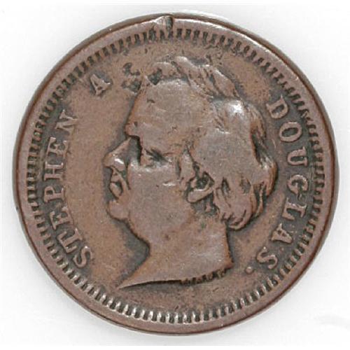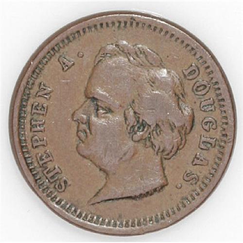 <B>(1861-1865) Two Stephen Douglas Tokens, Fuld-154/218a, R.6, and Fuld-154/417a, R.7.</B></I> A nice pair that would fit into many different types of collections. Personal inspection is suggested.
