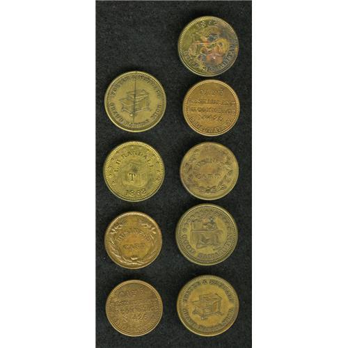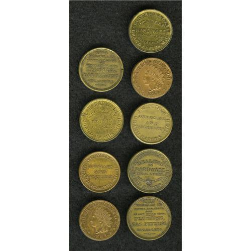 <B>(1861-1865) U.S. Civil War Group Lot of Nine Storecards Identified by Fuld numbers.</B></I> An outstanding uncertified lot of storecards, many with original luster still remaining. The current catalog value is $200-$300. Personal inspection is suggested.