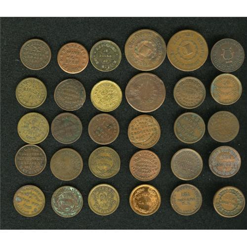 <B>(1861-1865) U.S. Civil War Group Lot of 30 Unsorted Tokens.</B></I> A great start in collecting Civil War tokens. Current catalog value is about $300+.