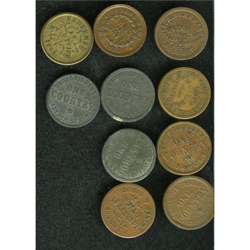 <B>(1861-1865) U.S. Civil War Group of 10 Miscellaneous Tokens, All Identified by Fuld Numbers.</B></I> This is a lot that should be viewed.