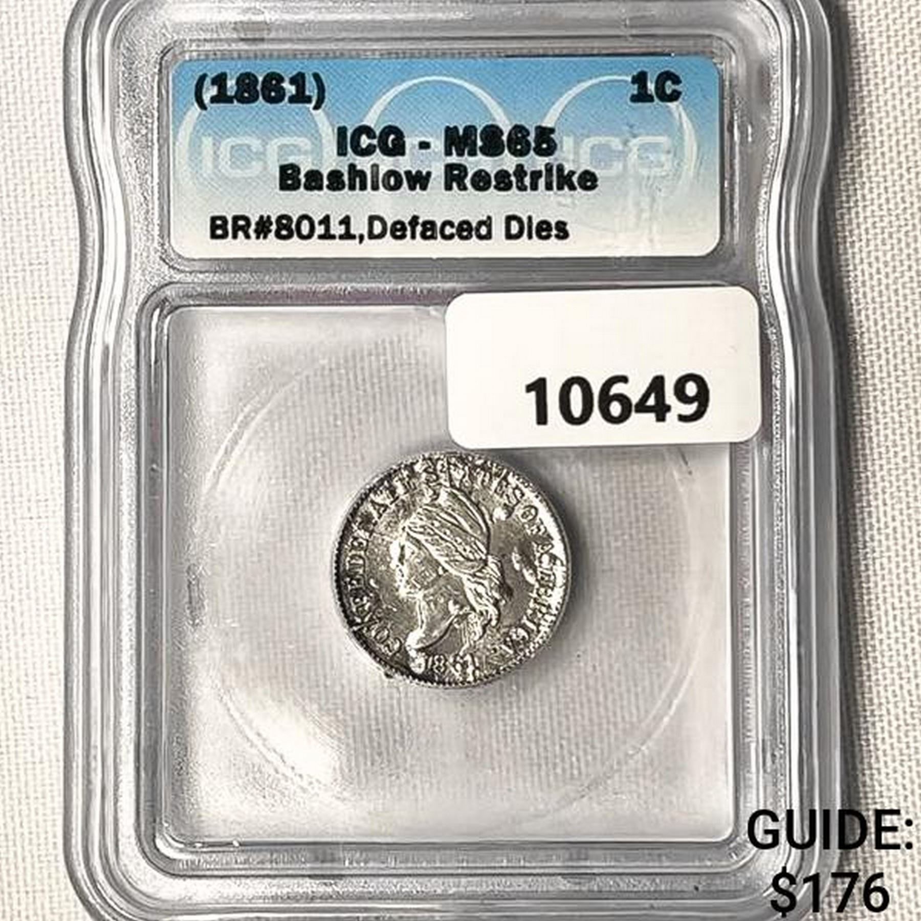 1861 1C CSA Bashlow Restrike ICG-MS65 BR#8011,