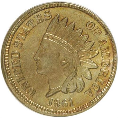<B>1861 1C MS64 PCGS.</B></I> PCGS Population (312/200). NGC Census: (248/175). Mintage: 10,100,000. Numismedia Wsl. Price for NGC/PCGS coin in MS64: $360. (#2061)<BR><BR><B>Coin Engraver:</B> James B. Longacre<BR><BR><b>Shipping:</b> Coins & Currency (<a target="_blank" href="http://www.heritageauctions.com/common/shipping.php">view shipping information</a>)
