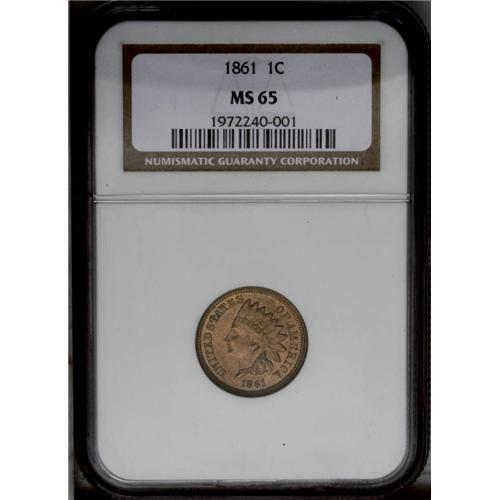 <B>1861<1C> MS65 NGC.</B></I> The strike on this lower mintage Copper-Nickel issue is typically well executed and both sides are draped in light reddish patina. <BR><BR><B>Important notice:</B> Heritage usually auctions material at the rate of 200-250 lots per hour. On some occasions eBay Live bid software or the Internet may not be able to keep up with the pace of the auction. We recommend placing a realistic absentee bid now as insurance to avoid disappointment. Occasionally the auctioneer may eliminate or reject an eBay Live bid, and the auctioneer may also reopen a lot after the close of the eBay live bidding (usually because we missed an audience bid), and may reject your bid even if it shows you as the winning bidder. By bidding via eBay Live, you agree that Heritage may award the lot to another bidder at its sole discretion under the circumstances described above or any other reasonable circumstances. Since eBay bids are not shown to us until we open the lot on the floor, we treat those bids just like floor bids. In most cases the floor responds before the eBay bid is presented to us, due to Internet lag time, so for consistency we have made it a policy that floor bids are always considered first over tie eBay live bids. Also please note that all Heritage lots purchased through eBay Live carry a 20% Buyer's Premium. Please make sure you read the Terms and Conditions before you bid. This lot is being auctioned in conjunction with a live floor auction by Heritage Galleries & Auctioneers. All final auction and invoice information will be supplied by Heritage Galleries & Auctioneers, and all other information should be considered preliminary. Lot:368 <BR><BR><B>Winning Notification and Billing:</B> After the FINAL session in this auction is complete, Heritage will send e-mail and snail mail invoices. This process normally takes several days. All final auction and invoice information will be supplied by Heritage Galleries & Auctioneers, and all other information should be considered preliminary. <BR><BR>This auction will be conducted on a live auction floor and over the Internet through eBay Live. If you choose to place an absentee bid, please take a moment to <font color='#0000ff'><u><a href='http://pages.ebay.com/liveauctions/help/before/laabsentee.html'>learn how eBay Live absentee bidding works</a></u></font><font color='#000000'>