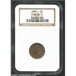 1861 1C MS65 NGC. Well struck aside from the very tips of the headdress feathers. A lustrous and see