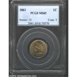 1861 1C MS65 PCGS. A well struck and lustrous Gem that has pleasing surfaces with just a few toning.