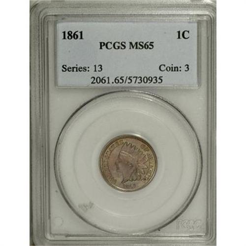 1861 1C MS65 PCGS. Fully struck with crisply defined d