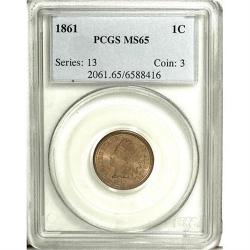 <B>1861 1C MS65 PCGS.</B></I> The smooth surfaces of this lovely Gem are largely peach-gold with a touch of olive. A well struck copper-nickel cent from the initial year of the Civil War.<B><BR></B></I><I>From The Santa Fe Collection.</B></I><BR><BR><B>Coin Engraver:</B> James B. Longacre<BR><BR><b>Shipping:</b> Coins & Currency (<a target="_blank" href="http://www.heritageauctions.com/common/shipping.php">view shipping information</a>\)