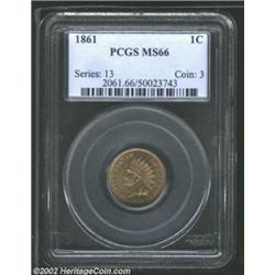 1861 1C MS66 PCGS. A simply gorgeous coin for the premium quality Gem collector, this honey-tan repr